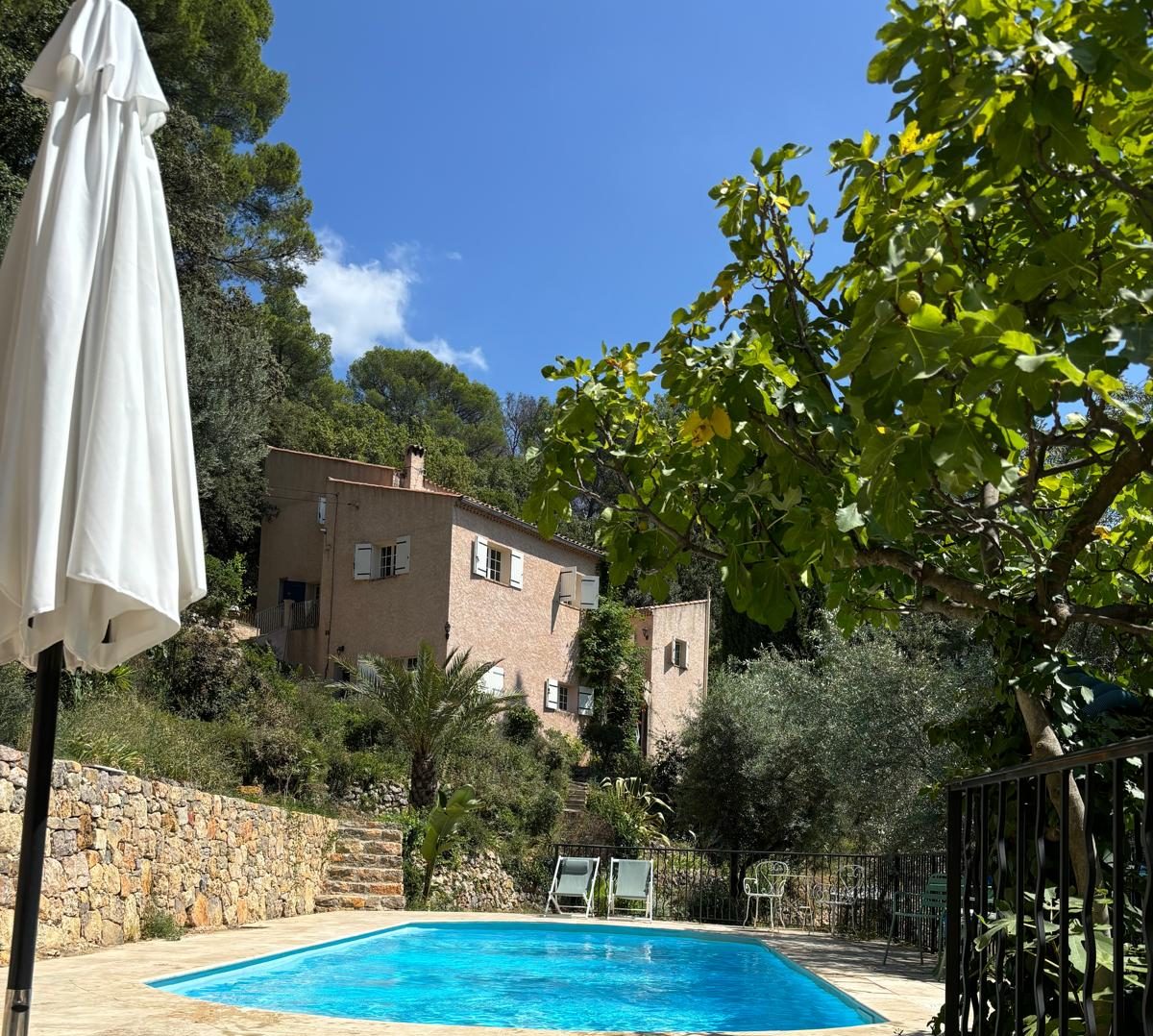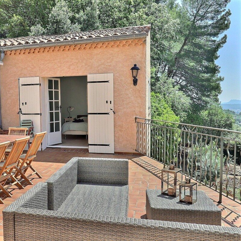 Das zentrale Herz bildet eine große Terrasse von über 50 qm mit Blick in den Garten und zum Pool und über die Baumwipfel der Provence sowie auf Draguignan.